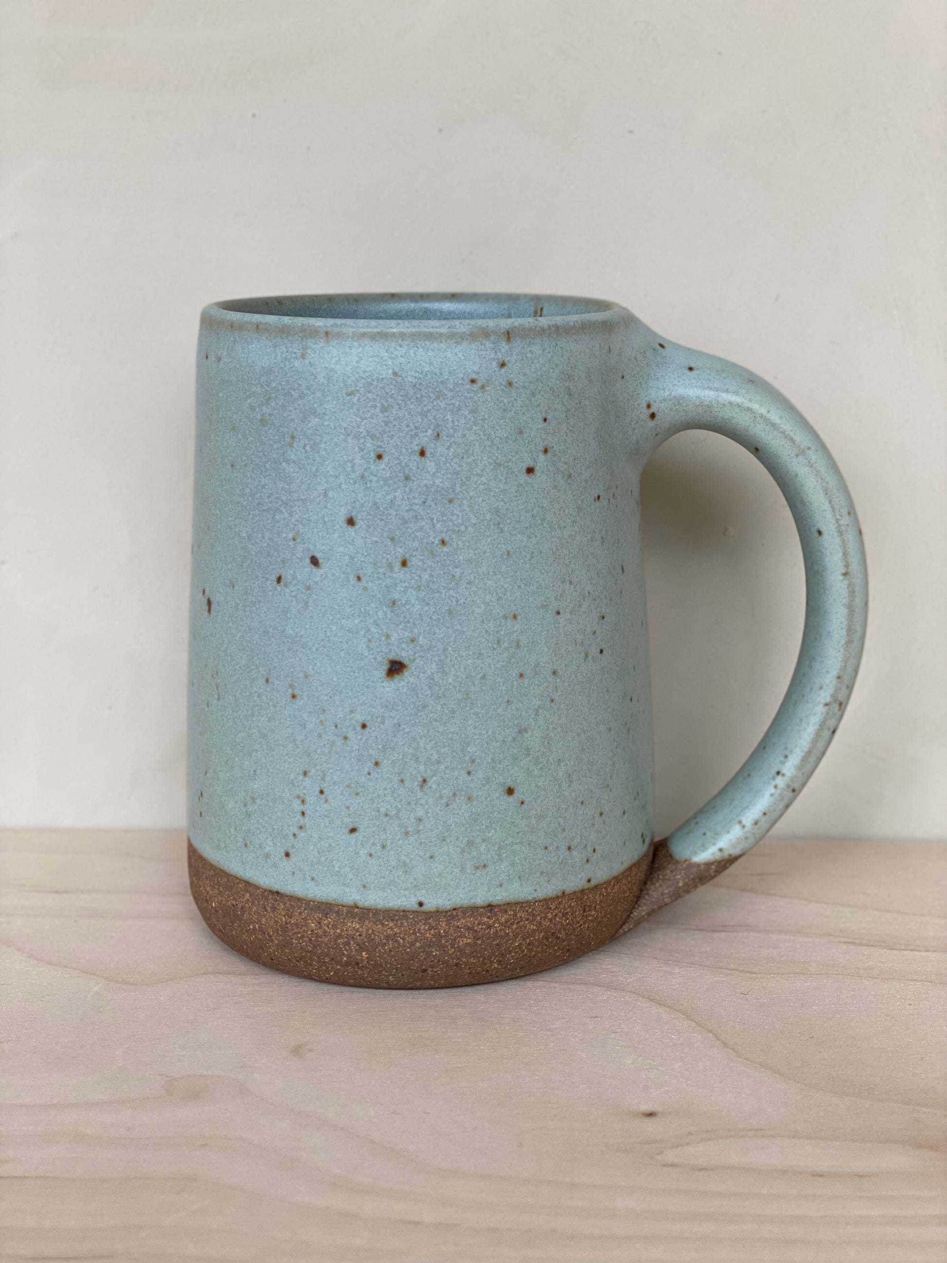Our 16oz mugs are a great size to get you going in the morning, with an ergonomic hand-pulled handle, even large hands will find these comfortable to hold. Glazed in our signature matte glazes, microwave, and dishwasher safe.