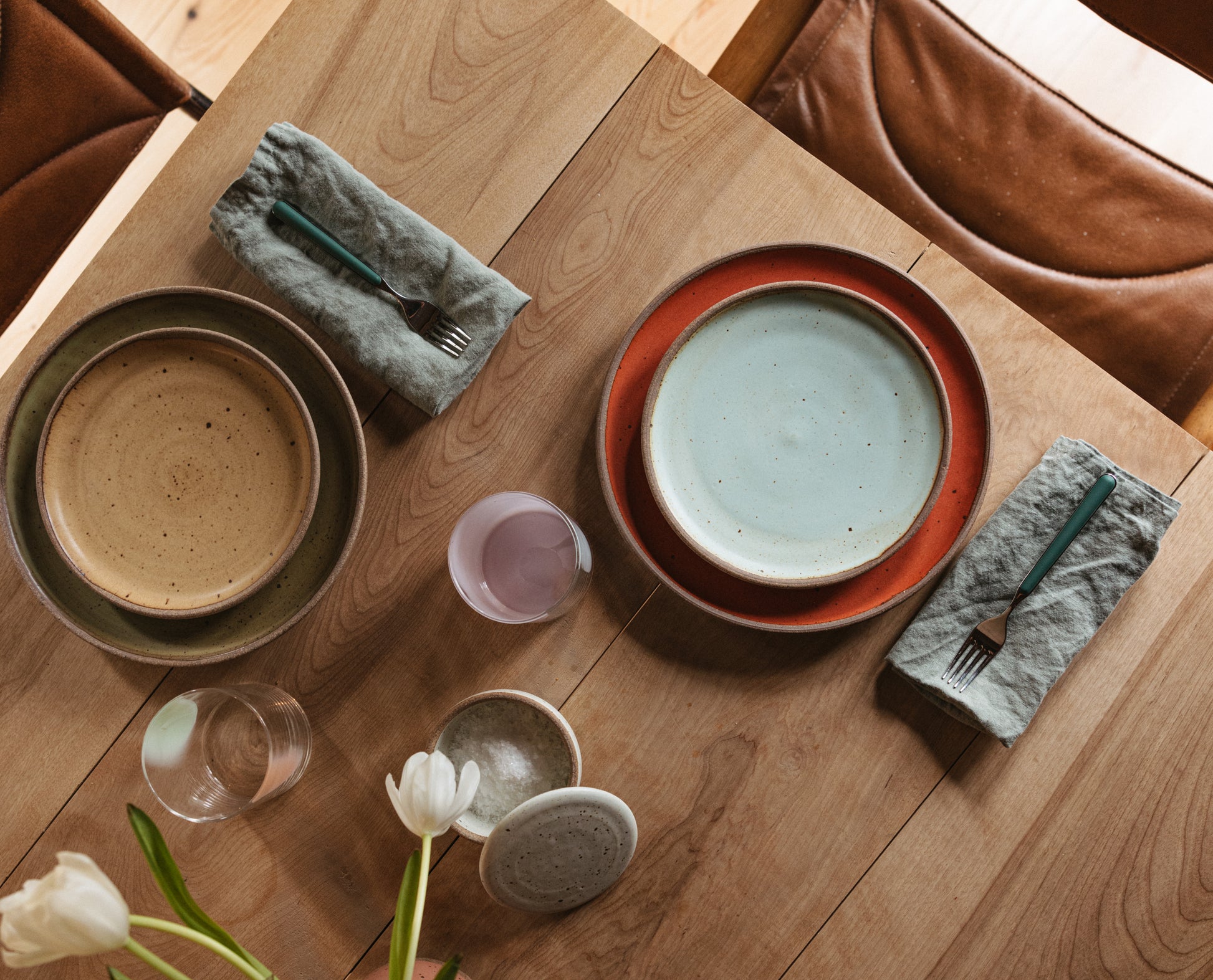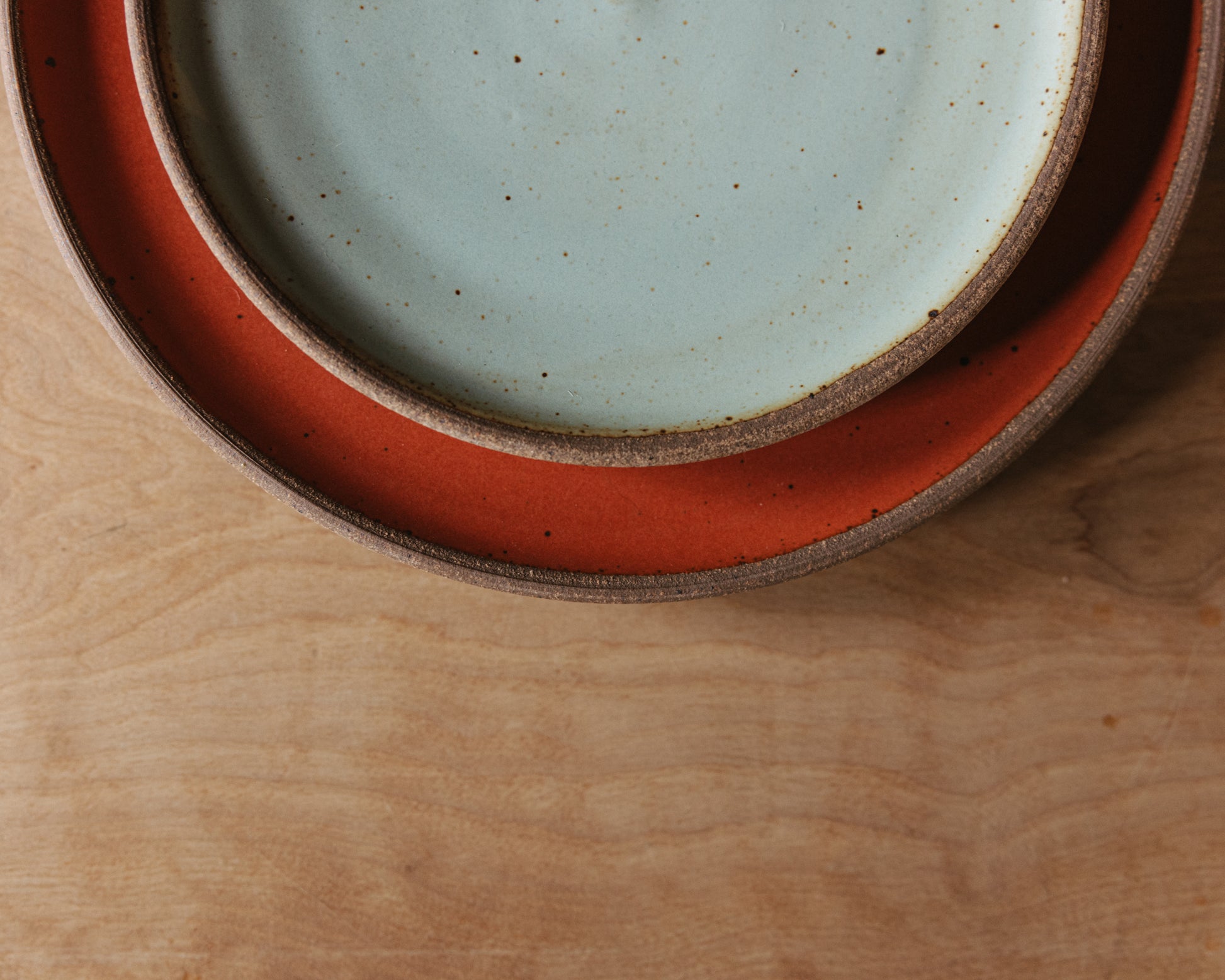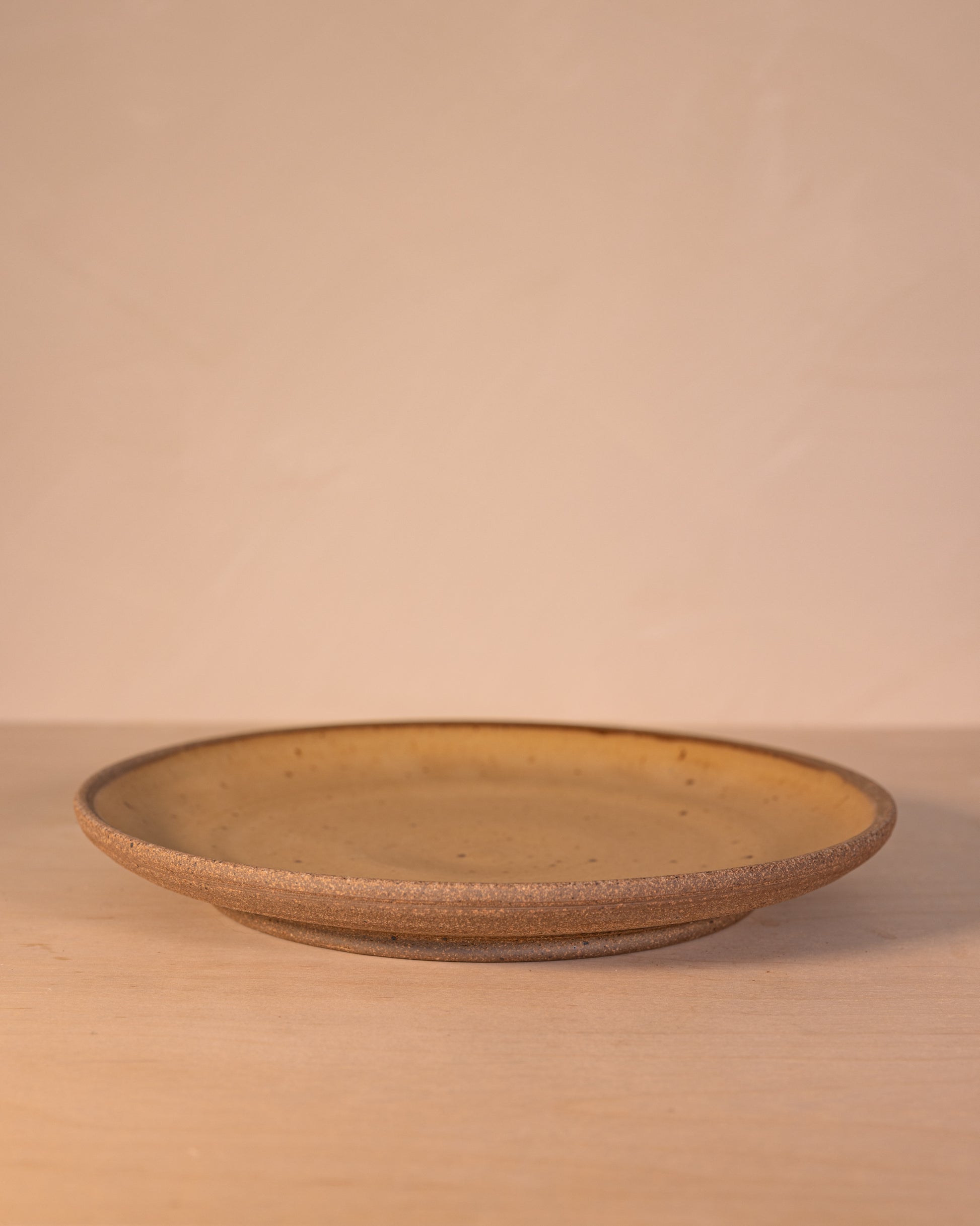 An ample 10.5" diameter gives you room to show off your culinary skills, giving your creations space to breathe. With a minimal profile, these stack beautifully. The potter's choice edition features a raw clay exterior, straight sided walls and a flat plating surface.