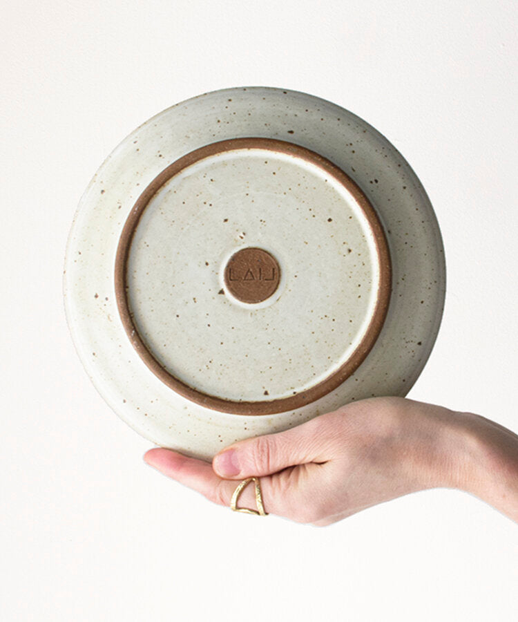 A generous 8" makes our side plate perfect for lunchtime and small plates. Trimmed with a low profile foot, and stamped 'LAIL'