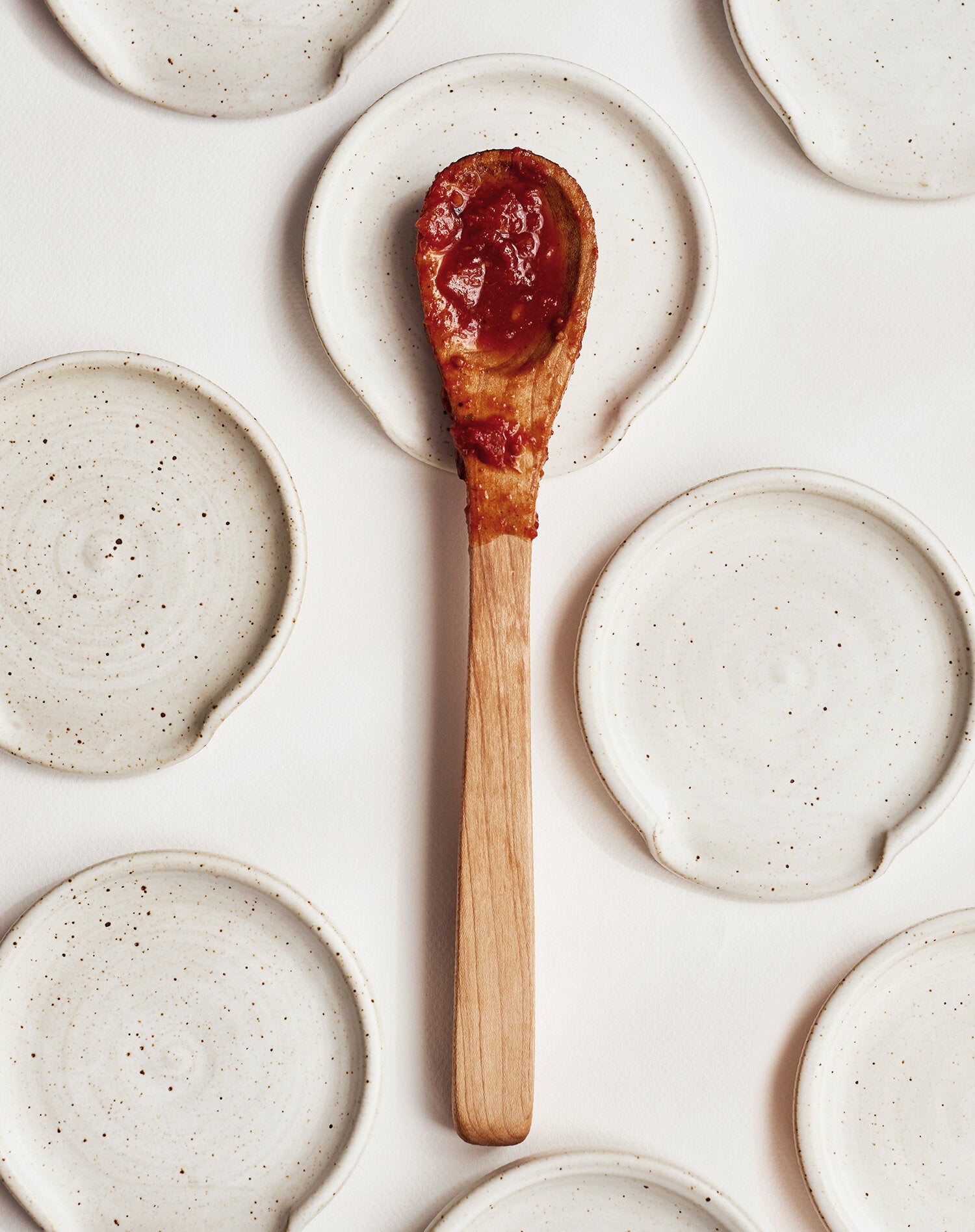 Keep your surfaces clean when cooking with this graceful spoon rest. Glazed in our signature matte glazes, this handmade kitchen accessory blends seamlessly with any kitchen.