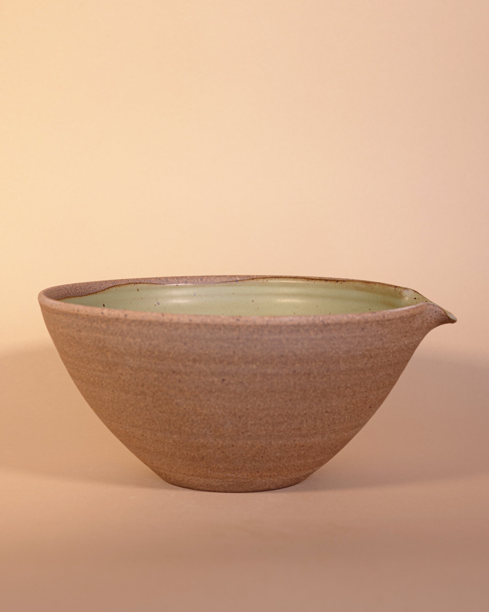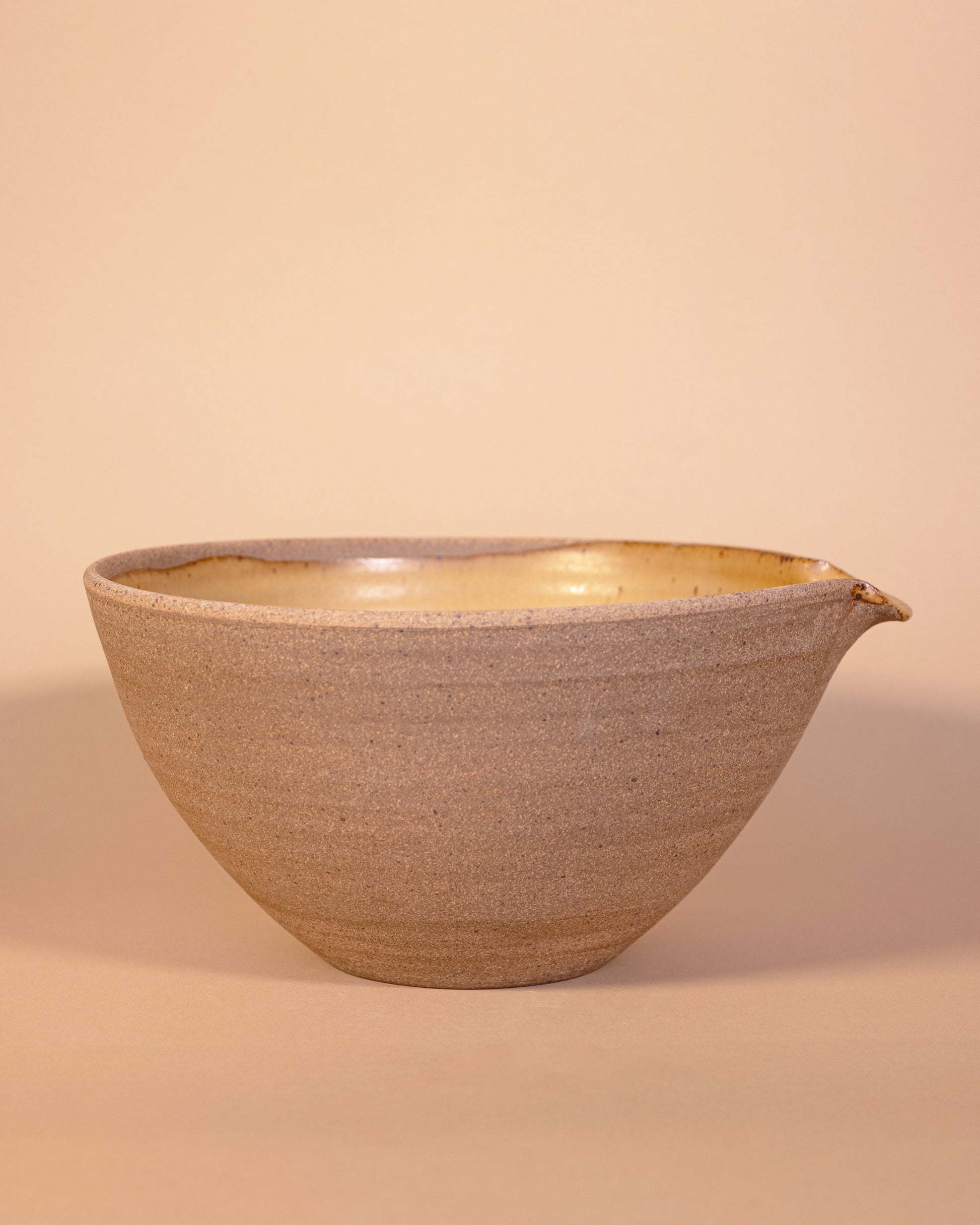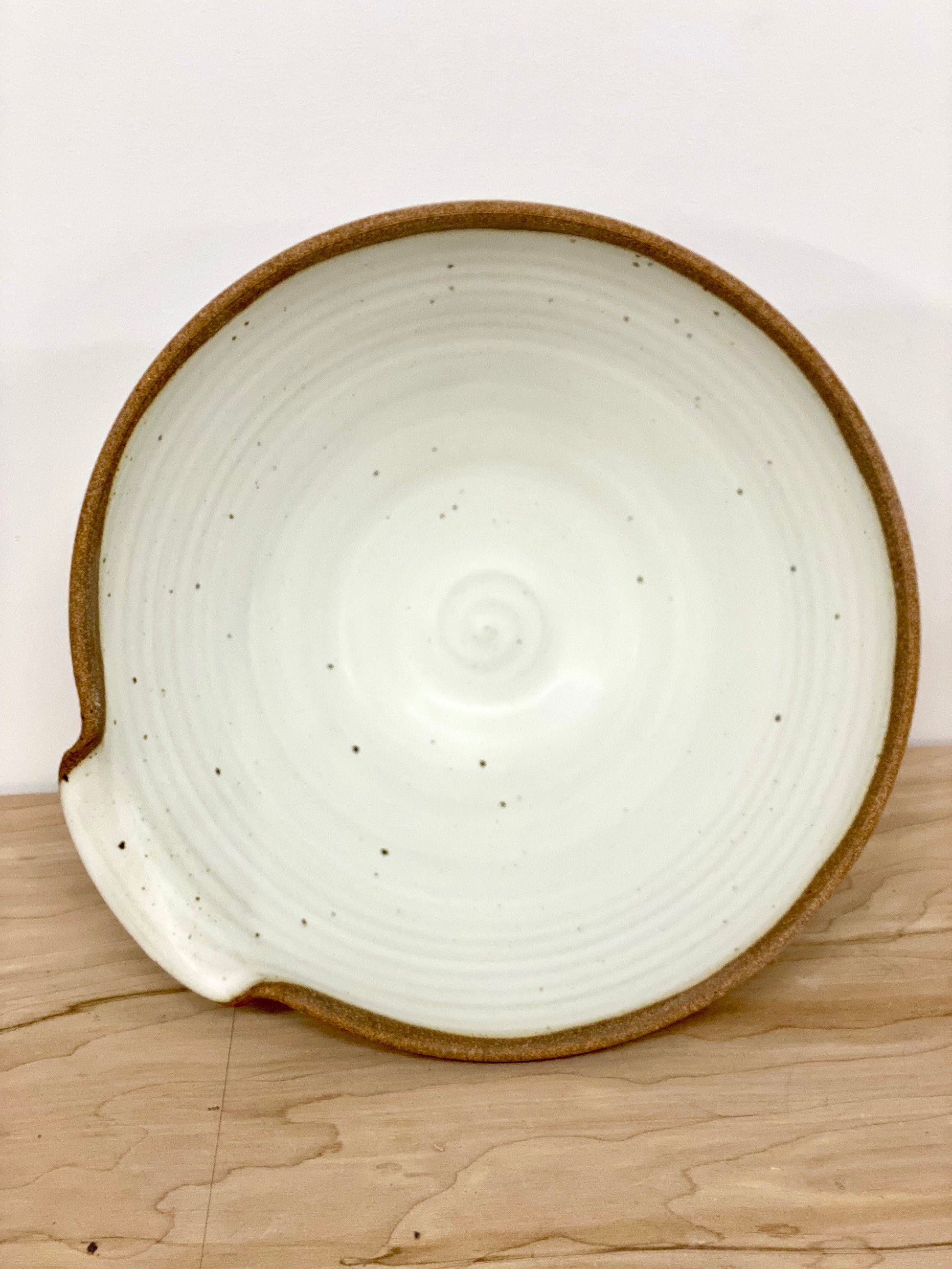 An oversized, spouted bowl designed for baking and perfect for pancakes. Or, fill with fruit and keep on the counter...use as popcorn bowl on movie nights...decant broth into quart containers...this is a truly multifunctional piece!