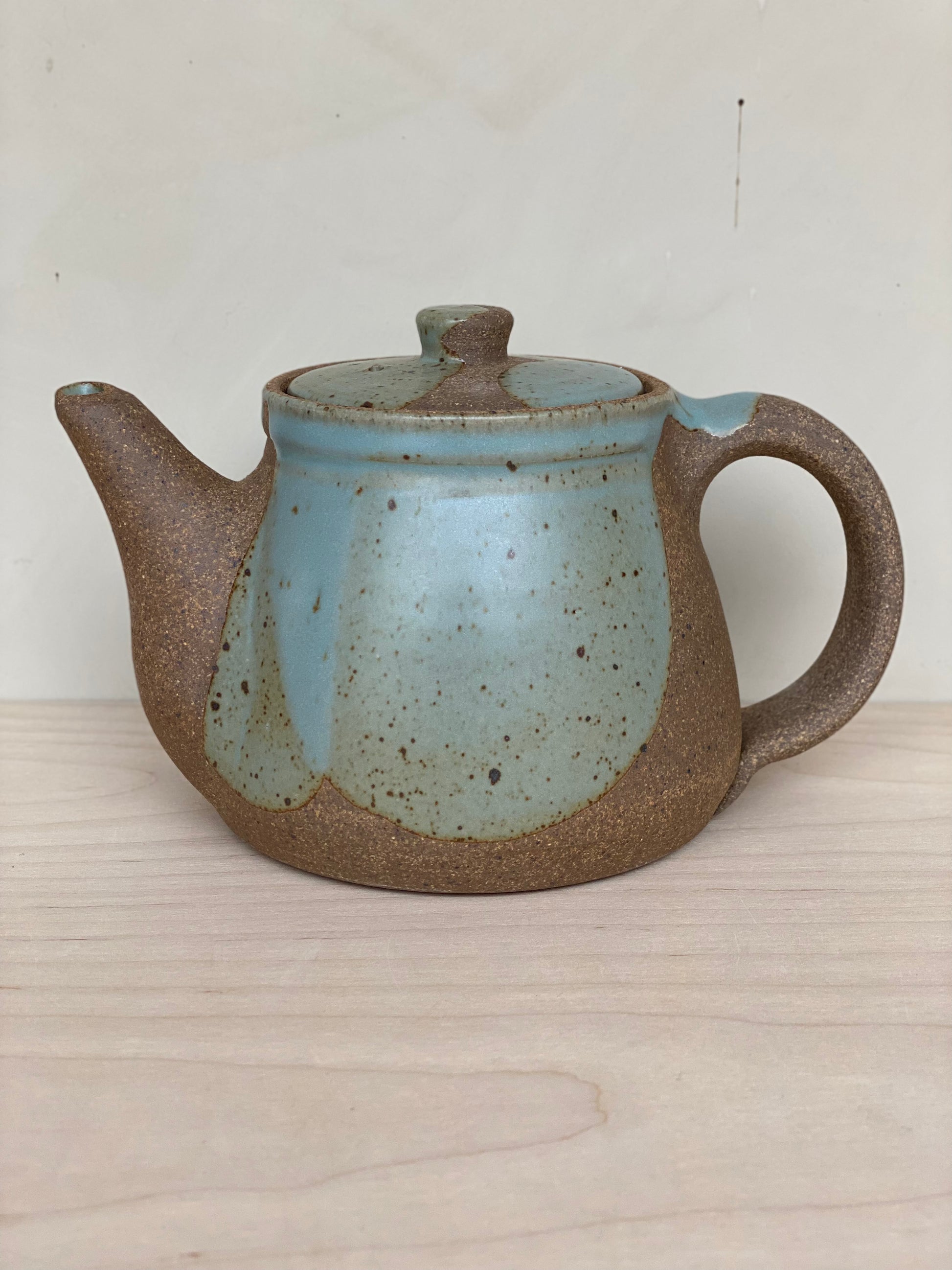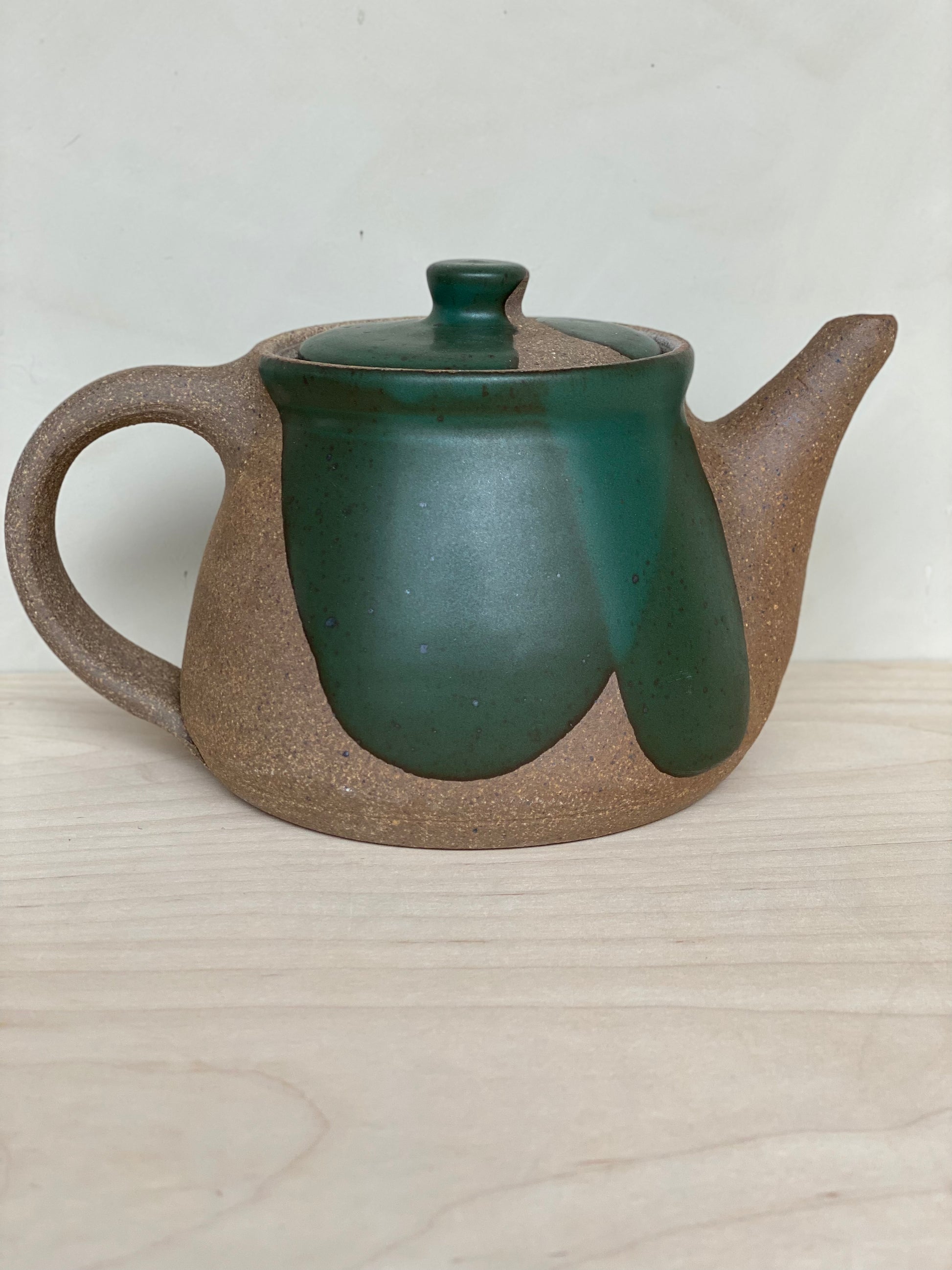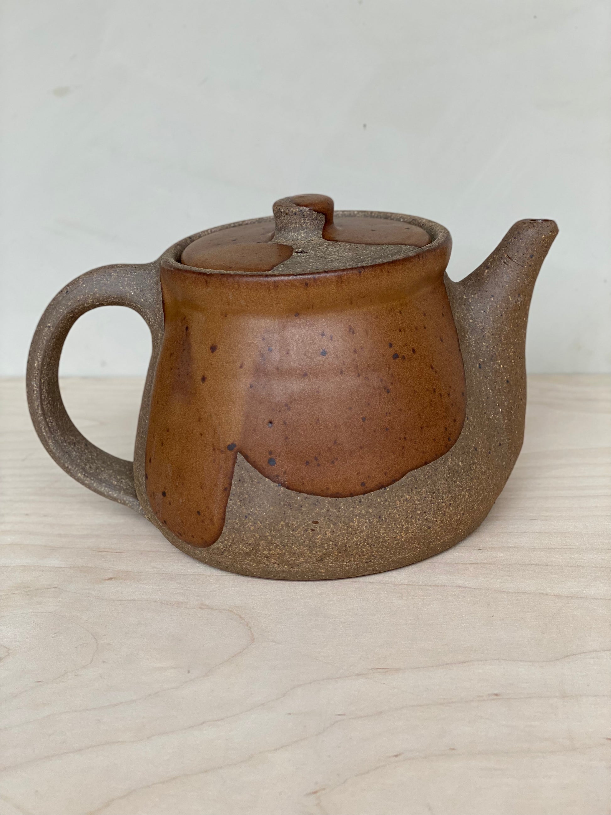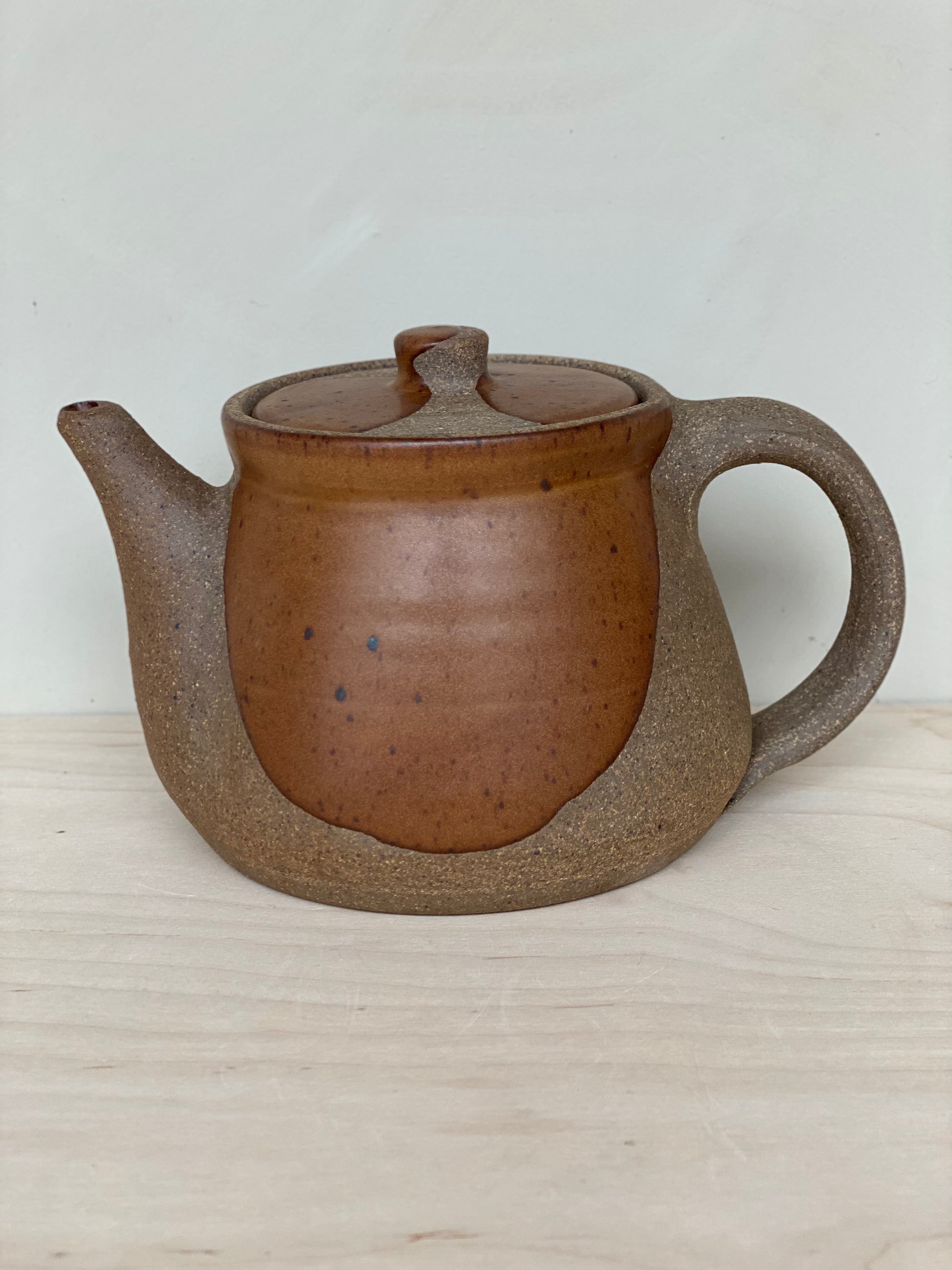 The perfect size for 2 to 4 cups, whether you're drinking by yourself or sharing with friends. These teapots feature raw clay along with poured glaze. Ergonomically designed to fit your hand, and signed by hand by Brad (teapots are his favorite piece to make!)