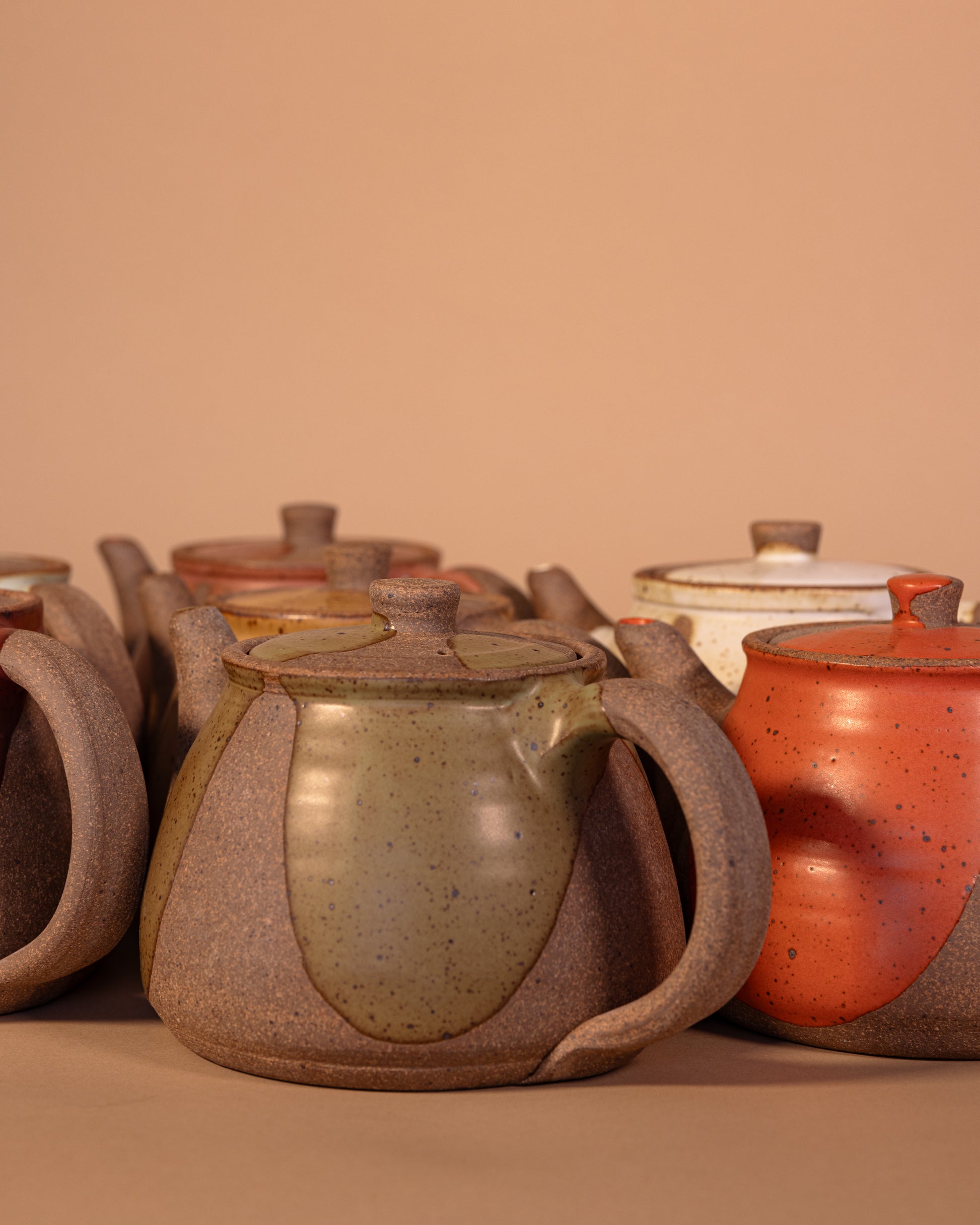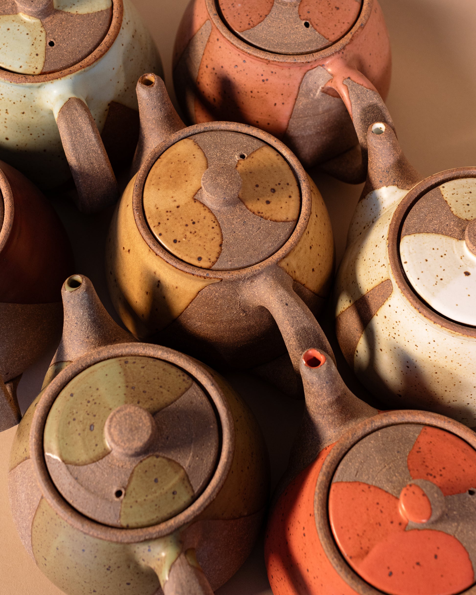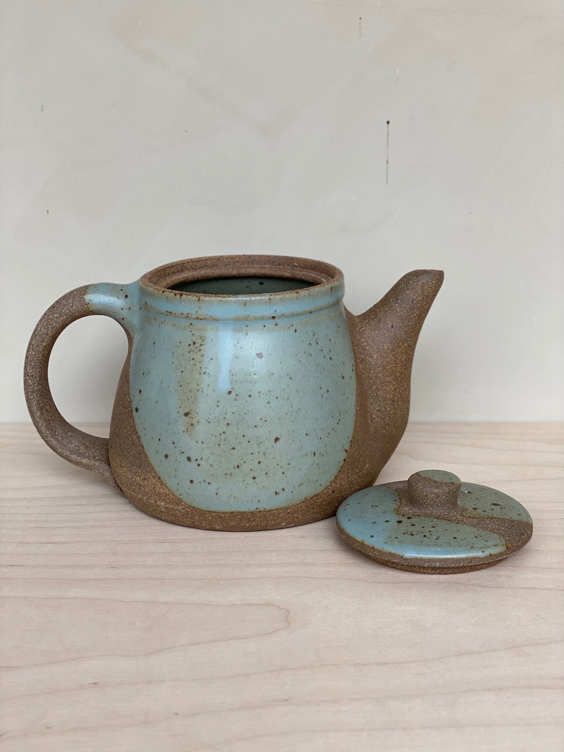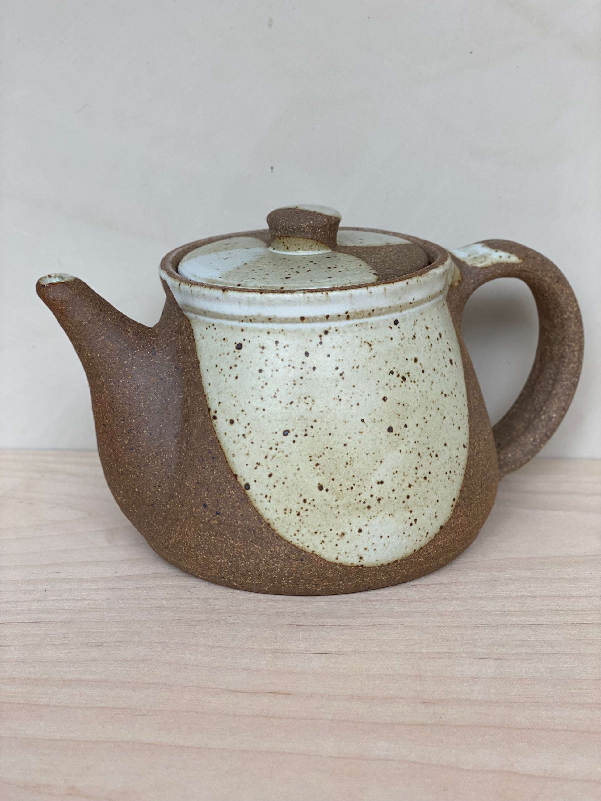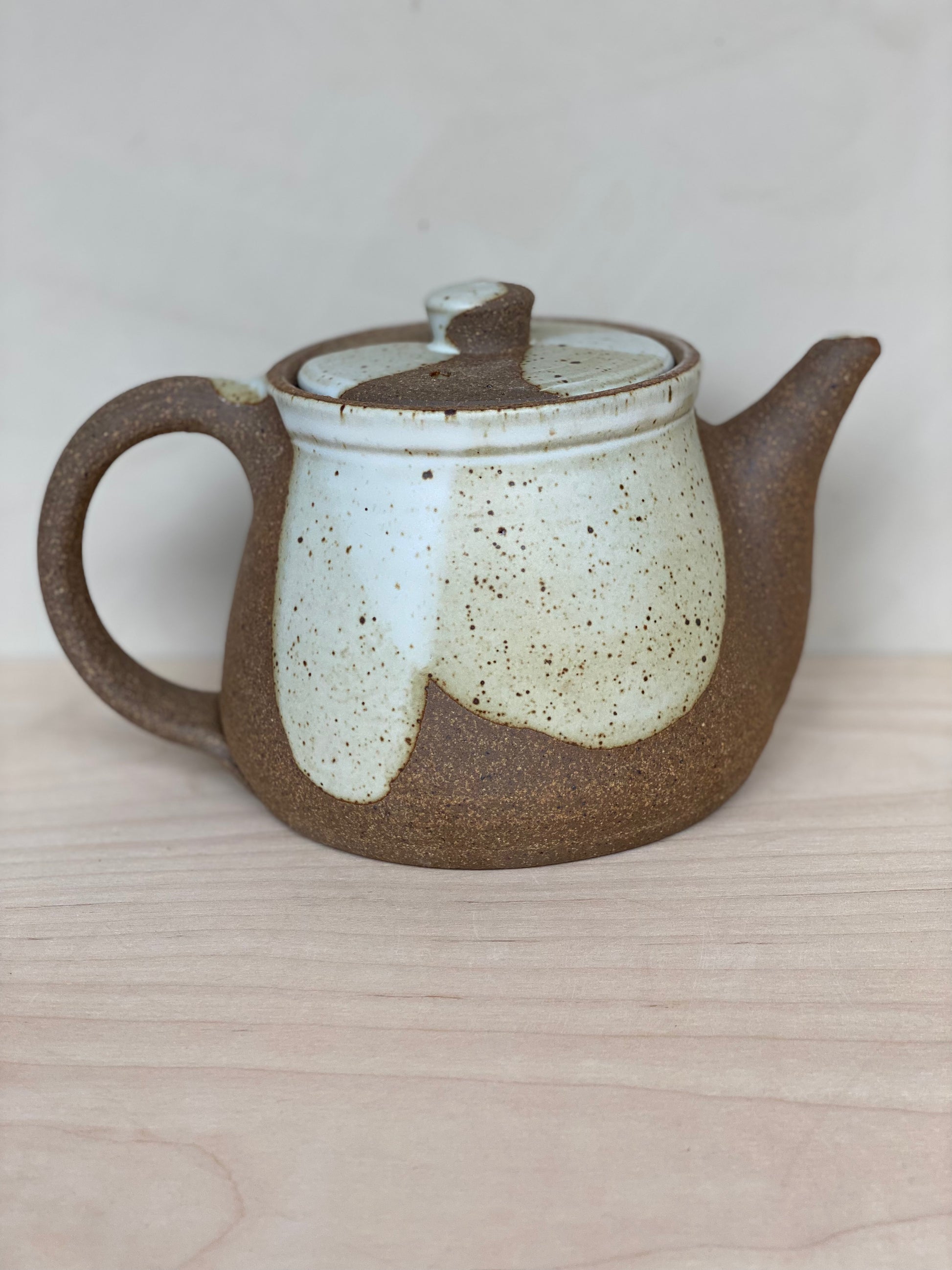 The perfect size for 2 to 4 cups, whether you're drinking by yourself or sharing with friends. These teapots feature raw clay along with poured glaze. Ergonomically designed to fit your hand, and signed by hand by Brad (teapots are his favorite piece to make!)