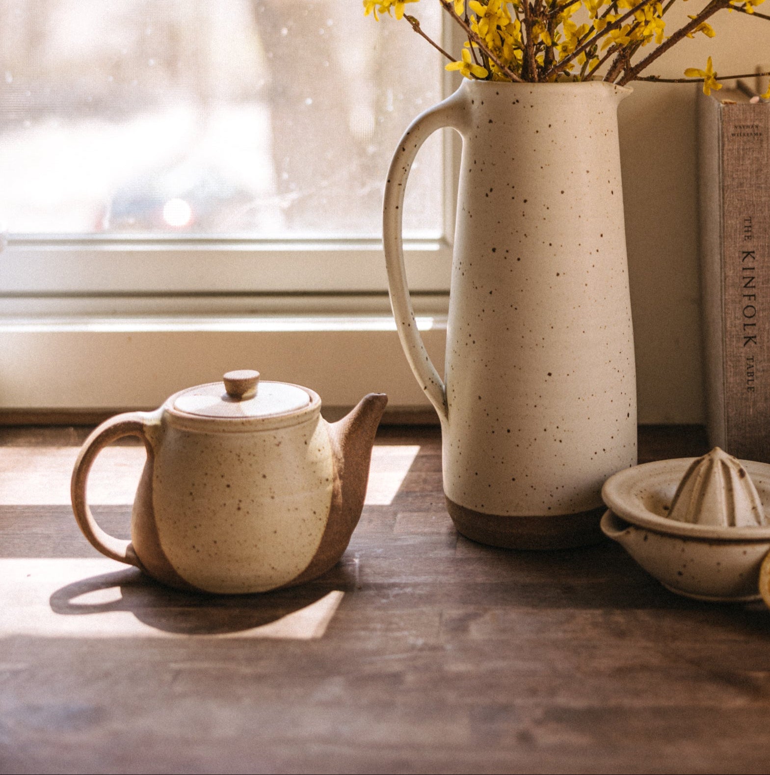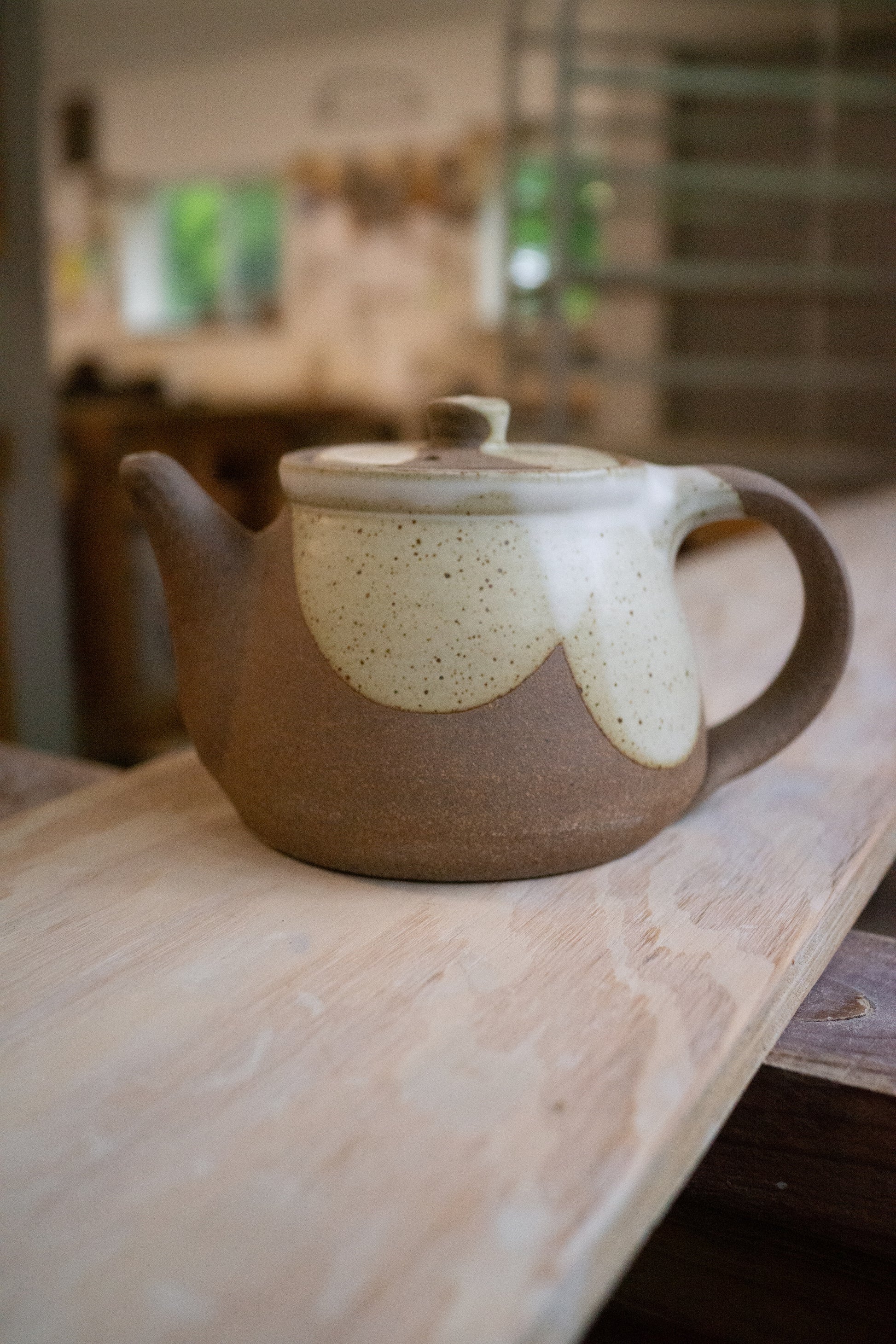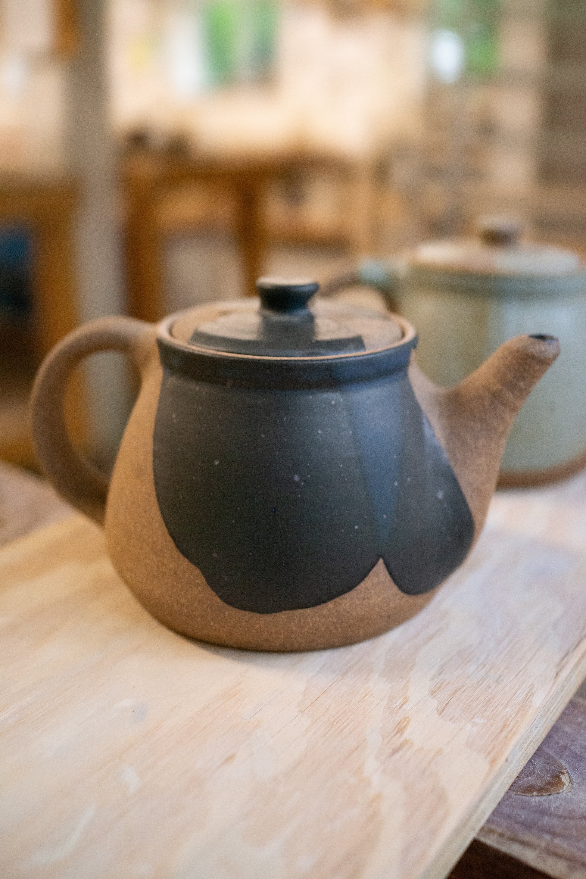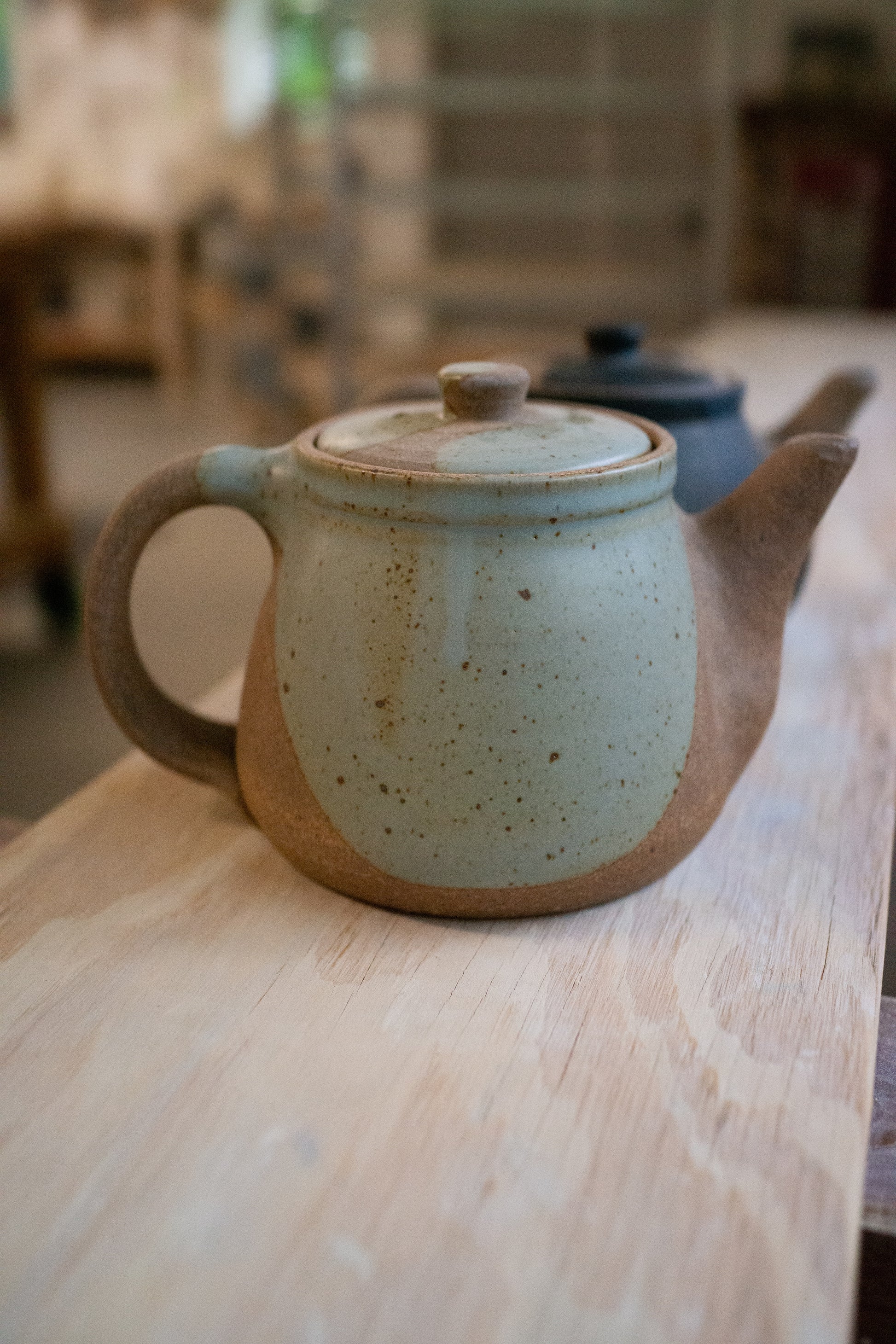 The perfect size for 2 to 4 cups, whether you're drinking by yourself or sharing with friends. These teapots feature raw clay along with poured glaze. Ergonomically designed to fit your hand, and signed by hand by Brad (teapots are his favorite piece to make!)