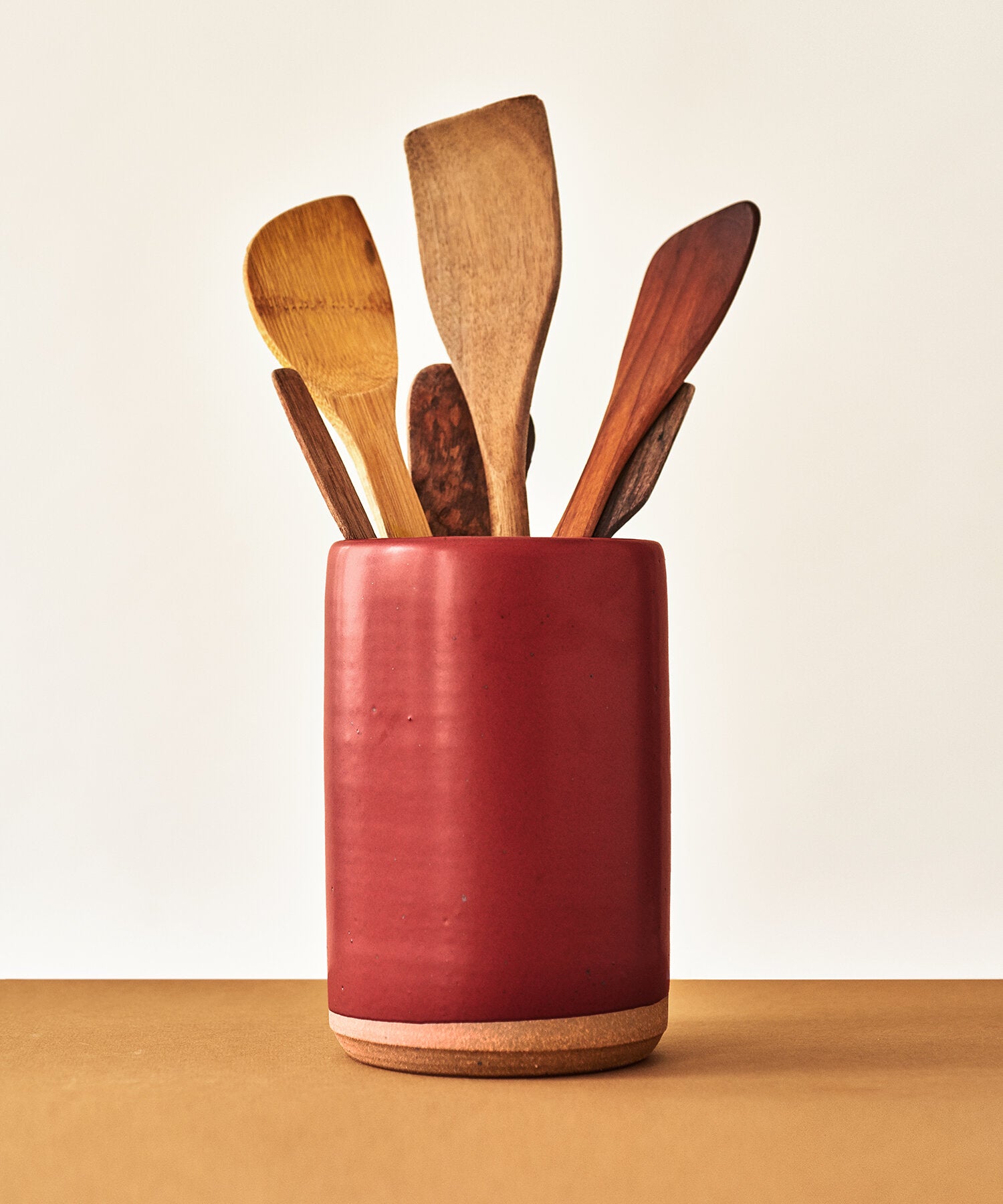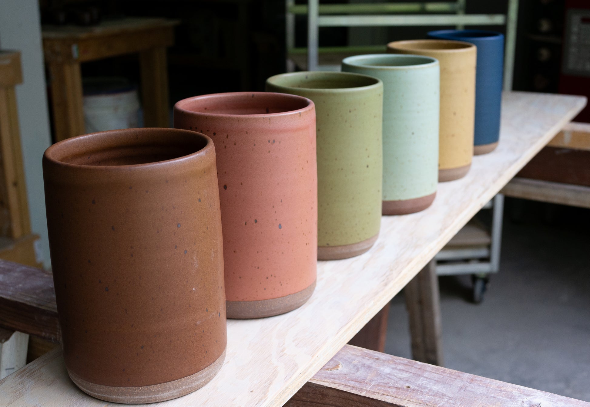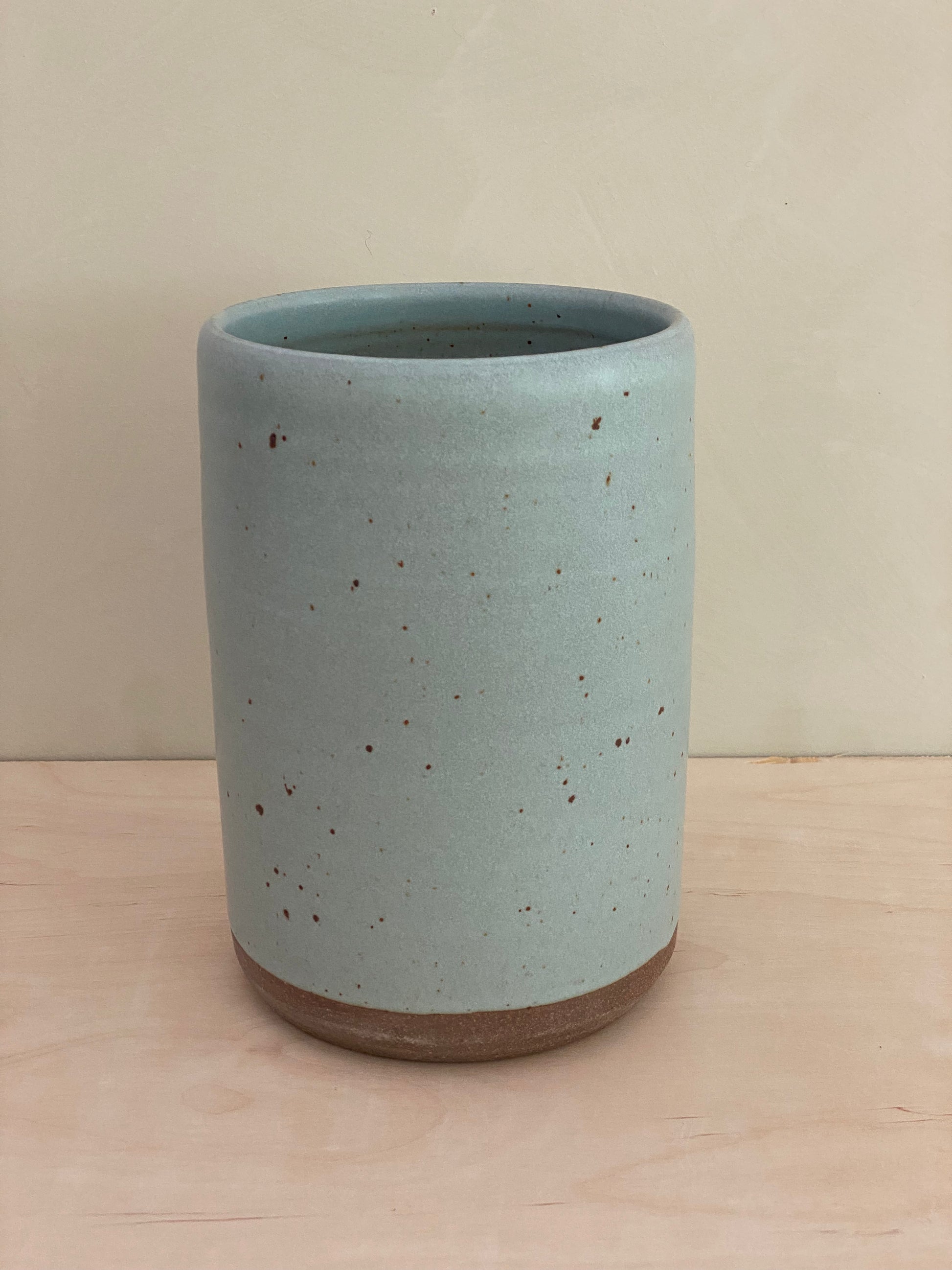The utility vase is a staple in every kitchen. Clean lines make this quiet vase suitable for use holding utensils, or for a generous bouquet of flowers. Available in all our signature glazes.